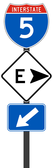 I think the problem is pretty simple: We rely on small text signs to figure out which highway entrance to take.