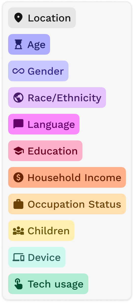 One of our main value propositions was offering a large pool of eager, verified participants to help our clients draw out valuable, user-centric product insights. While this pool of participants was high quality, it was also diverse, so we needed a way to filter them down for studies—even the best testing data is useless if the wrong participants are involved, so it was vital that our filters are powerful and intuitive.