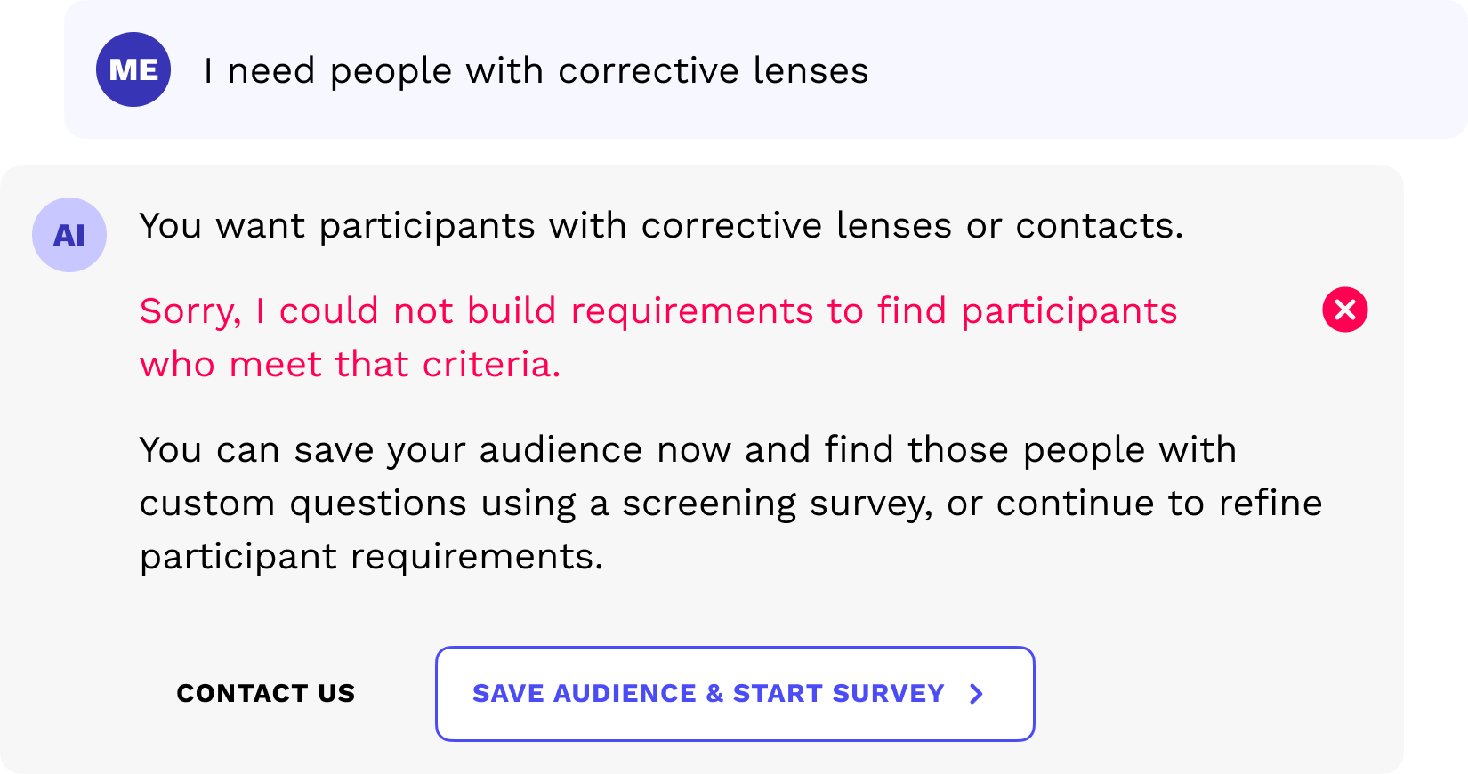 The CEO had a vision: “Make filtering for participants as easy as writing a prompt (AI)”. That’s fine; when generative AI works well, it’s magical. But AI is not always reliable, especially on complex, grammatically-ambiguous prompts.